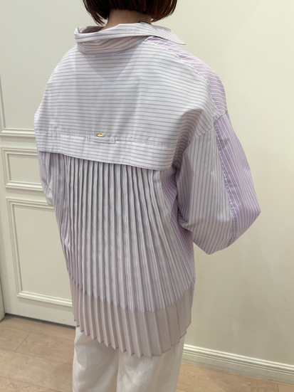 シャツはバックプリーツデザインで、後ろ姿まで華やかな印象に。